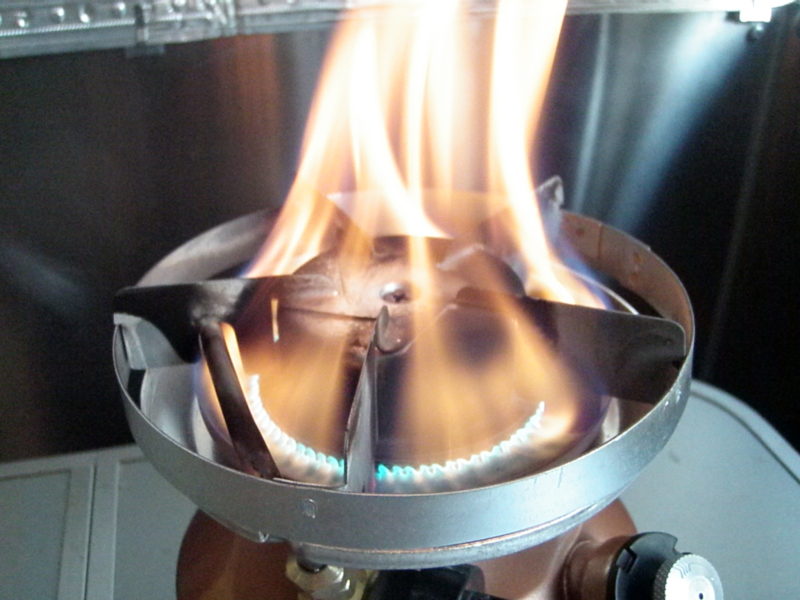 ツマミを最弱にすると青火になります。
